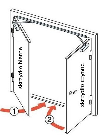 Po otwarciu obu skrzydeł, koordynator przytrzymuje skrzydło czynne aby w tym czasie skrzydło bierne zamkneło się. Gdy skrzydło bierne jest w pozycji zamkniętej automatycznie zamknie się skrzydło czynne. Ta funkcja gwarantuje zawsze prawidłowe zamknięcie obu skrzydeł. Jest to konieczny wymóg dla drzwi ppoż i użyteczny dla pozostałych.