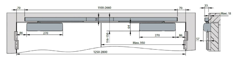Szerokość obu skrzydeł od 1350 do 2800 mm z DC700