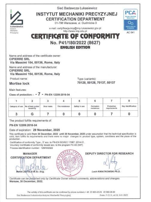 - Pełne zamkniecie, obrót kluczem 2x 360 stopini