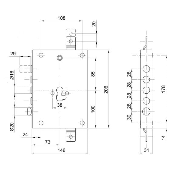 Antywłamaniowy zamek na wkładkę kasy 7 z mechanizmem zębatkowym o cichej, płynnej pracy i blokadą mechanizmu do drzwi DIERRE.
