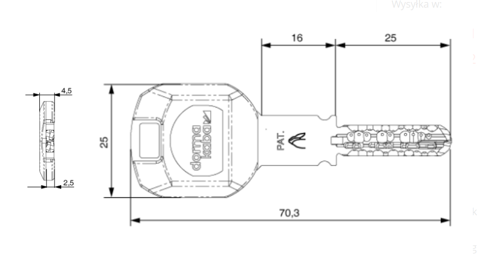 Już na pierwszy rzut oka klucz wygląda zupełnie inaczej, w przeciwieństwie do zwykłych kluczy. W porównaniu do standardowych kluczy nawiercanych, klucze Dormakaba posiadają frezowanie aż w czterech rzędach, aby zapewnić najwyższe bezpieczeństwo i ekstremalną dużą liczbę kombinacji - teoretycznie możliwe jest wyprodukowanie do ok. 100 miliardów unikalnych kodów kluczy (dla dla porównania standardzie jest ok. 50 000 kombinacji).
