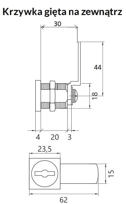 ZAMEK KRZYWKOWY KWADRATOWY EURO-LOCKS , ODGIĘTY, D0 SZAFEK BRANIOWYCH SUM MALOW