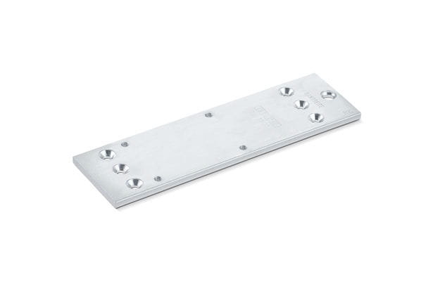 Płyta montażowa do drzwi stosowana w przypadku, jeżeli wiercenie otworów przelotowych w konstrukcji drzwi jest nie wskazane, lub gdy na ościeżnicy nie ma wystarczającej ilości miejsca na zamontowanie samozamykacza.