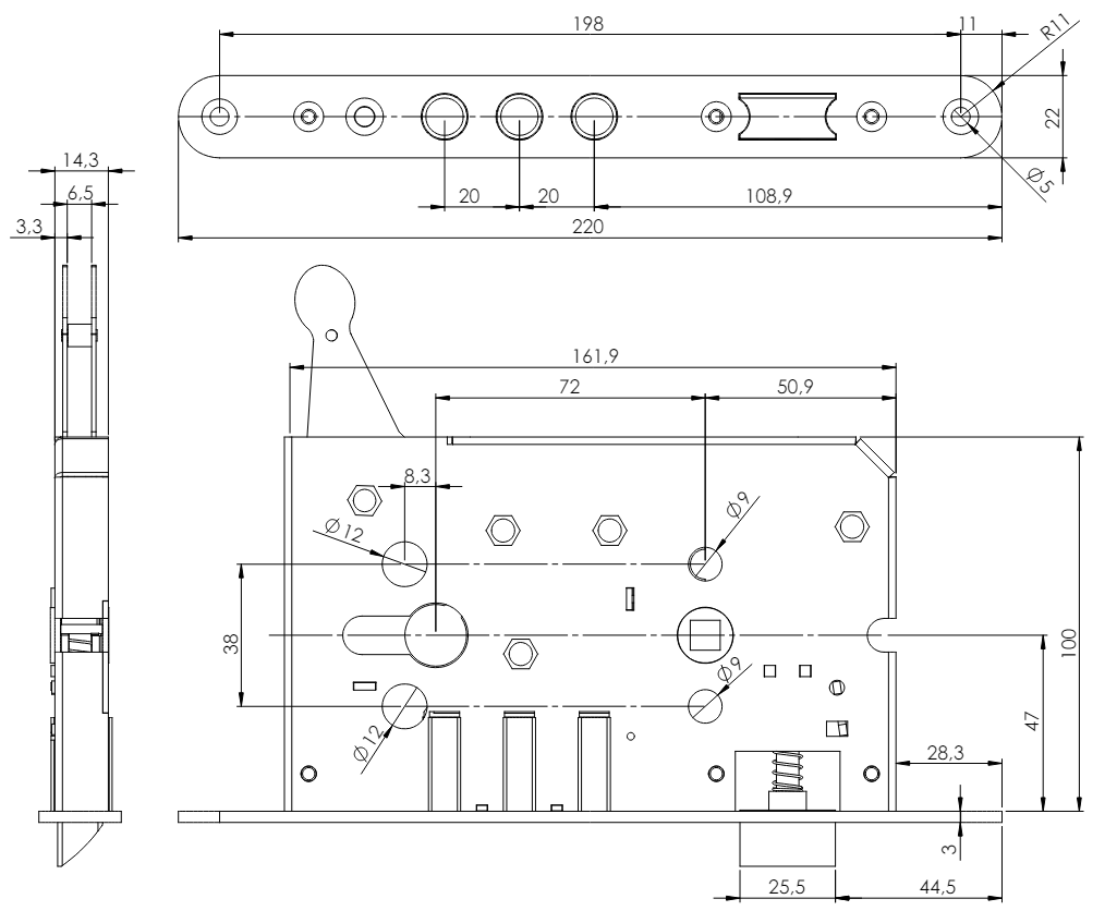 - zamek główny rozporowy stosowany w drzwiach Boryszew serii TORO