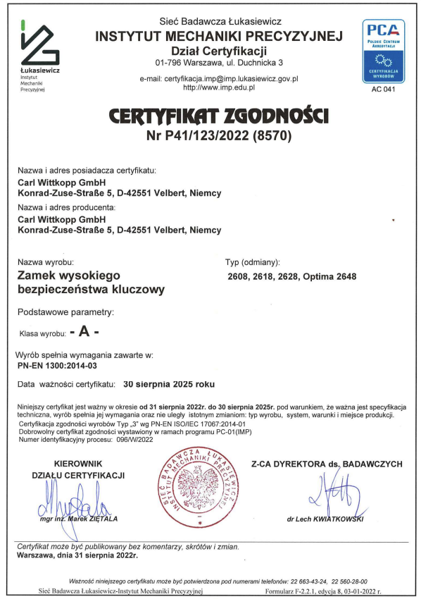 WITTKOPP Zamek sejfowy kluczowy 2648