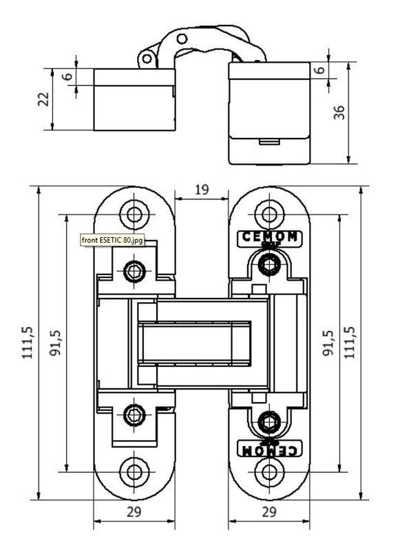 • Główne wymiary: wysokość 111,5 mm, szerokość 29 mm, głębokość części drzwiowej 36 mm, głębokość części ościeżnicowej 21 mm,